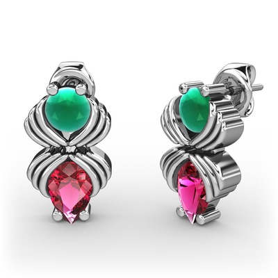 Rodolit garnet ve kök zümrüt 925 ayar gümüş küpe