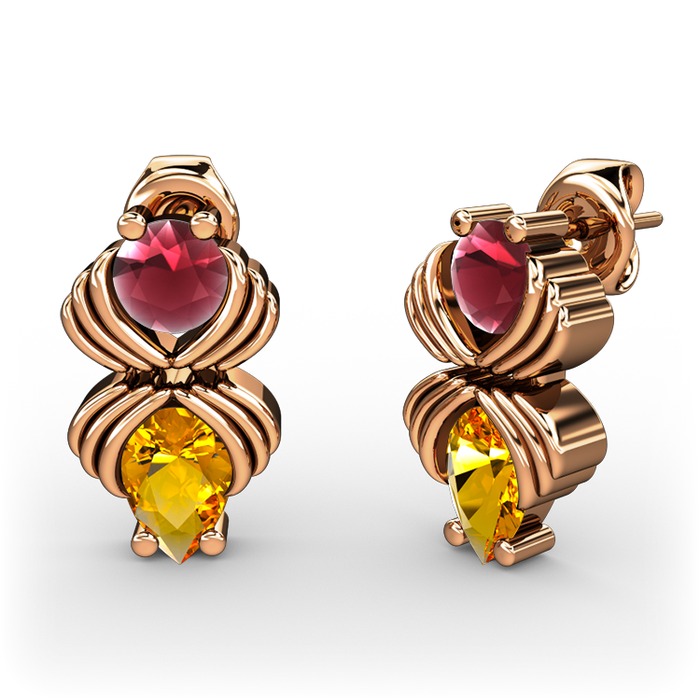 Sitrin ve kök yakut 8 ayar rose altın küpe