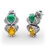 Sitrin ve kök zümrüt 14 ayar beyaz altın küpe