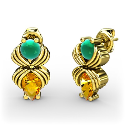 Sitrin ve kök zümrüt 8 ayar altın küpe