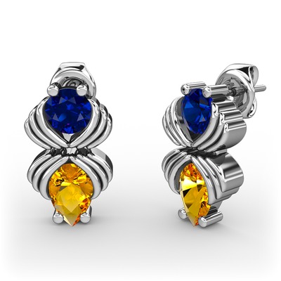 Sitrin ve lab safir 18 ayar beyaz altın küpe