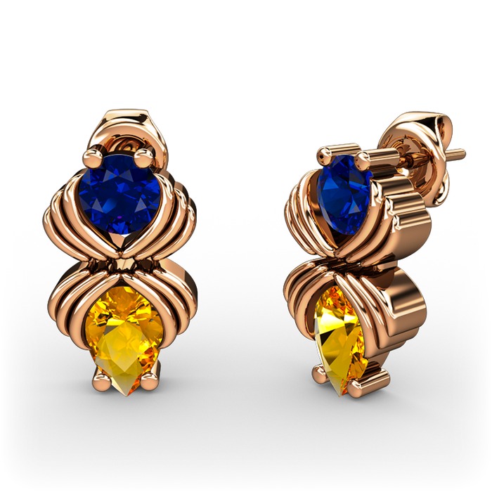Sitrin ve lab safir 8 ayar rose altın küpe