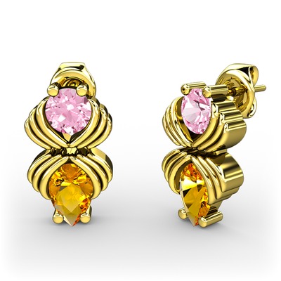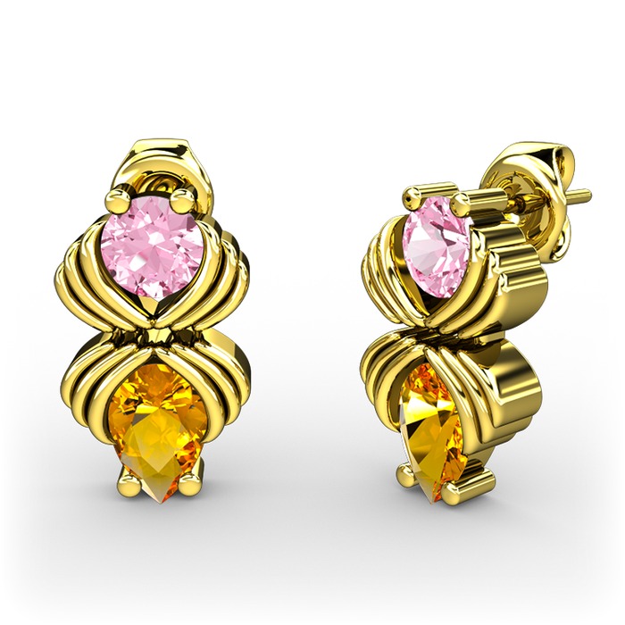 Sitrin ve pembe kuvars 925 ayar altın kaplama gümüş küpe