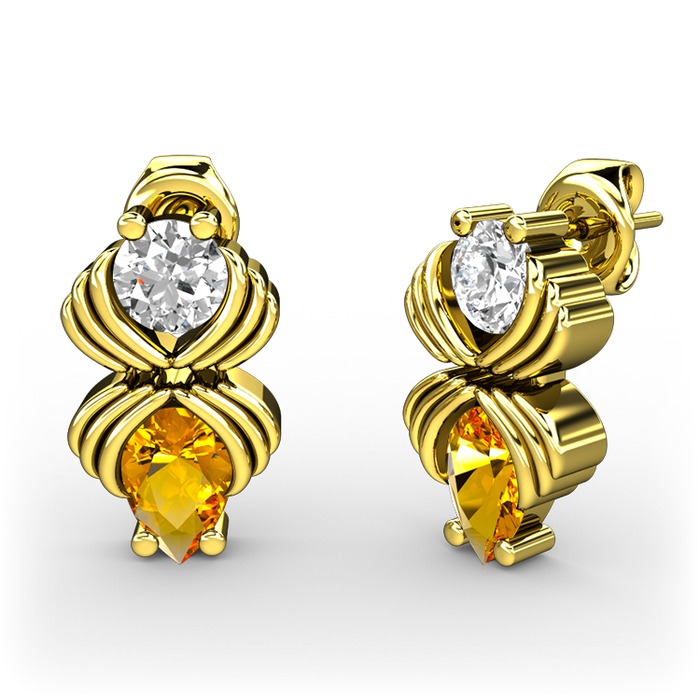 Sitrin ve swarovski 925 ayar altın kaplama gümüş küpe