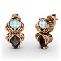 Siyah zirkon ve akuamarin 925 ayar rose altın kaplama gümüş küpe