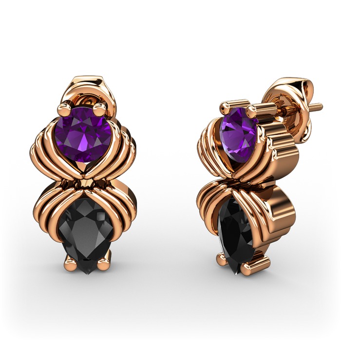 Siyah zirkon ve ametist 8 ayar rose altın küpe