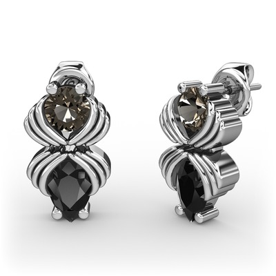 Siyah zirkon ve dumanlı kuvars 8 ayar beyaz altın küpe