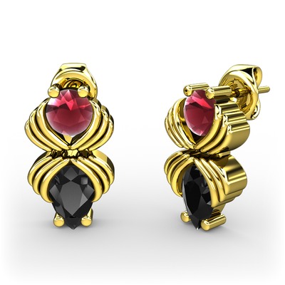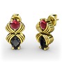 Siyah zirkon ve kök yakut 18 ayar altın küpe