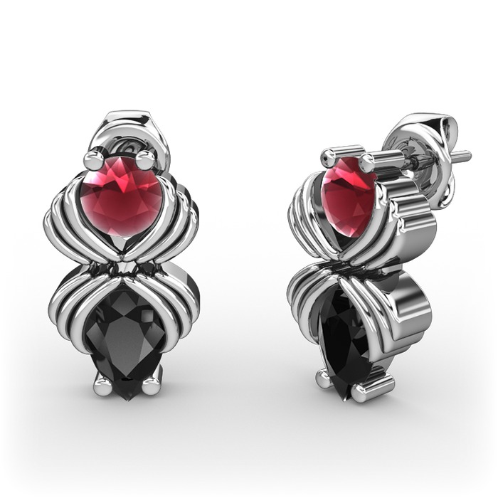 Siyah zirkon ve kök yakut 8 ayar beyaz altın küpe