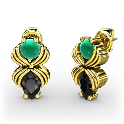 Siyah zirkon ve kök zümrüt 14 ayar altın küpe