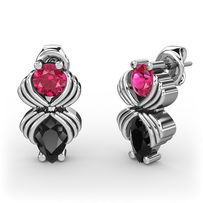 Siyah zirkon ve rodolit garnet 18 ayar beyaz altın küpe