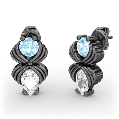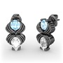 Swarovski ve akuamarin 925 ayar siyah rodyum kaplama gümüş küpe