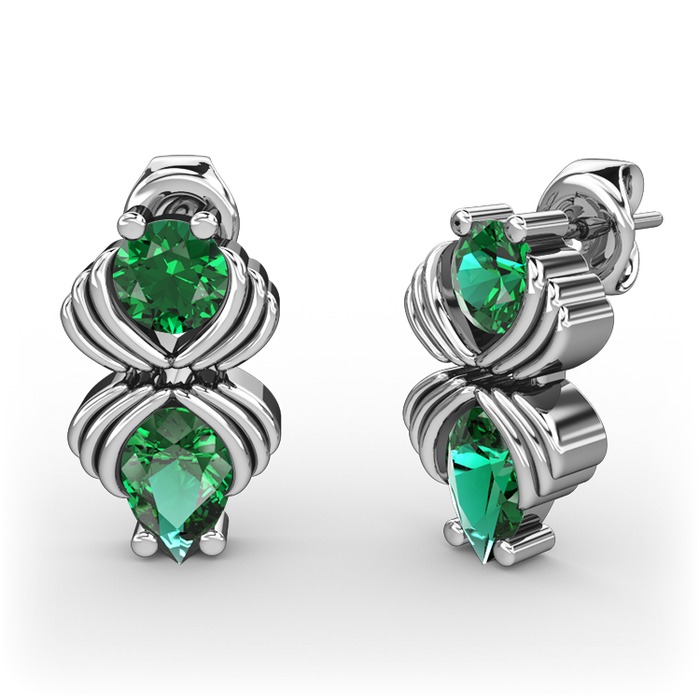 Yeşil kuvars 8 ayar beyaz altın küpe