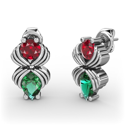Yeşil kuvars ve garnet 925 ayar gümüş küpe