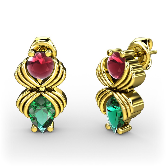 Yeşil kuvars ve kök yakut 18 ayar altın küpe