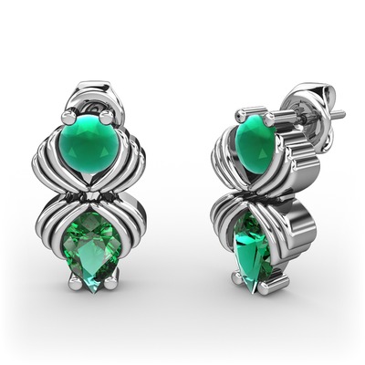 Yeşil kuvars ve kök zümrüt 14 ayar beyaz altın küpe
