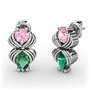 Yeşil kuvars ve pembe kuvars 8 ayar beyaz altın küpe