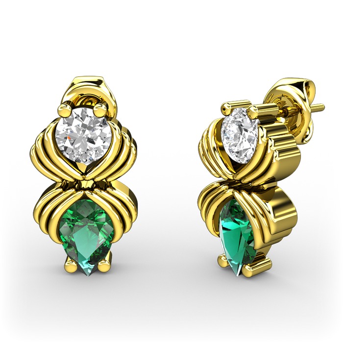 Yeşil kuvars ve pırlanta 925 ayar altın kaplama gümüş küpe (0.48 karat)