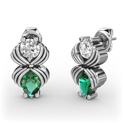 Yeşil kuvars ve pırlanta 925 ayar gümüş küpe (0.48 karat)