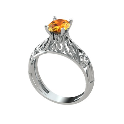 Sitrin 14 ayar beyaz altın yüzük