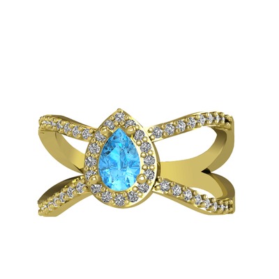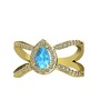 Akuamarin ve beyaz zirkon 925 ayar altın kaplama gümüş yüzük