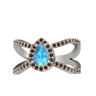 Akuamarin ve dumanlı kuvars 925 ayar gümüş yüzük