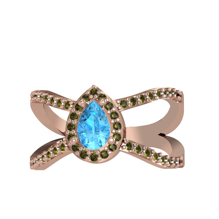 Akuamarin ve peridot 14 ayar rose altın yüzük