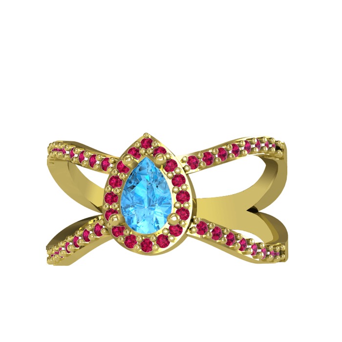 Akuamarin ve rodolit garnet 8 ayar altın yüzük