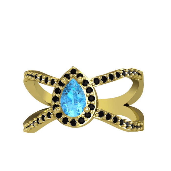 Akuamarin ve siyah zirkon 925 ayar altın kaplama gümüş yüzük