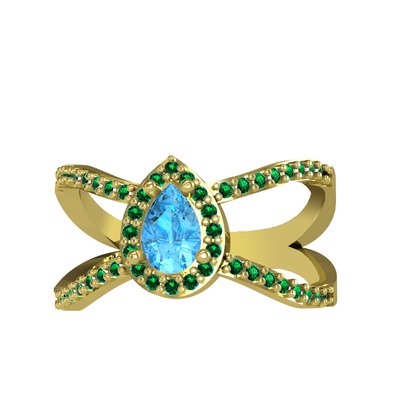Akuamarin ve yeşil kuvars 18 ayar altın yüzük