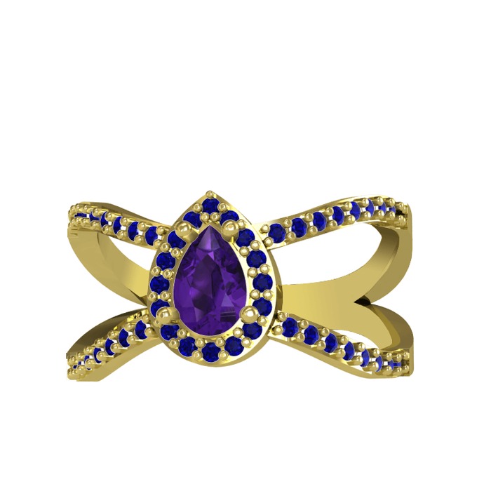 Ametist ve lab safir 925 ayar altın kaplama gümüş yüzük
