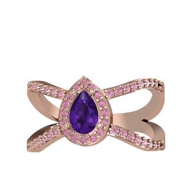 Ametist ve pembe kuvars 14 ayar rose altın yüzük