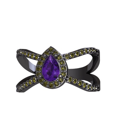 Ametist ve peridot 925 ayar siyah rodyum kaplama gümüş yüzük