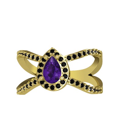 Ametist ve siyah zirkon 925 ayar altın kaplama gümüş yüzük