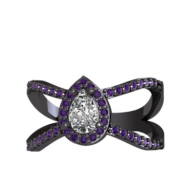 Beyaz zirkon ve ametist 925 ayar siyah rodyum kaplama gümüş yüzük