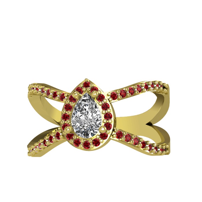 Beyaz zirkon ve garnet 18 ayar altın yüzük