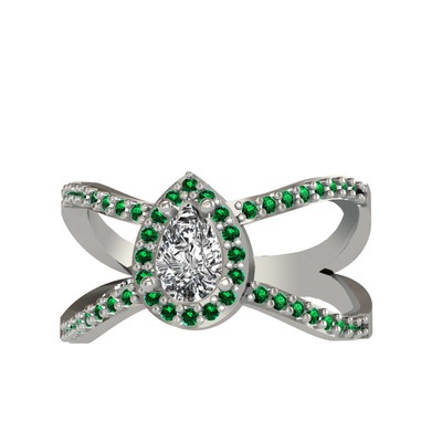 Beyaz zirkon ve yeşil kuvars 14 ayar beyaz altın yüzük