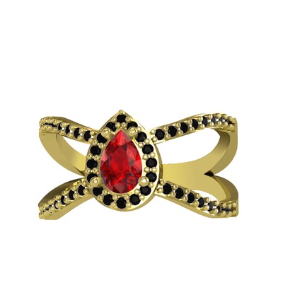 Garnet ve siyah zirkon 14 ayar altın yüzük