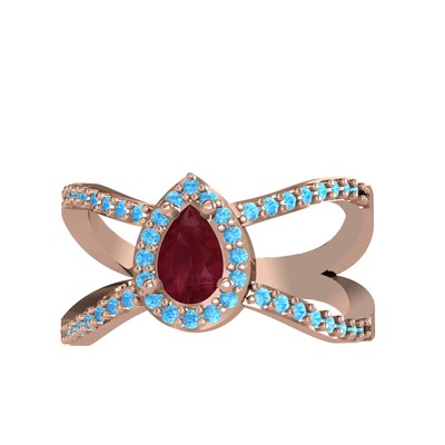 Kök yakut ve akuamarin 18 ayar rose altın yüzük
