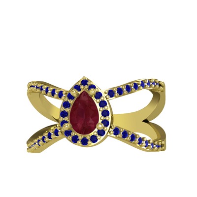 Kök yakut ve lab safir 14 ayar altın yüzük