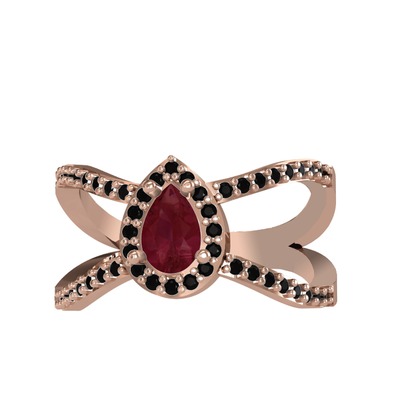 Kök yakut ve siyah zirkon 14 ayar rose altın yüzük
