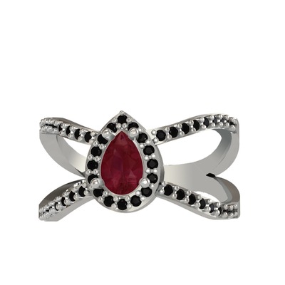 Kök yakut ve siyah zirkon 925 ayar gümüş yüzük