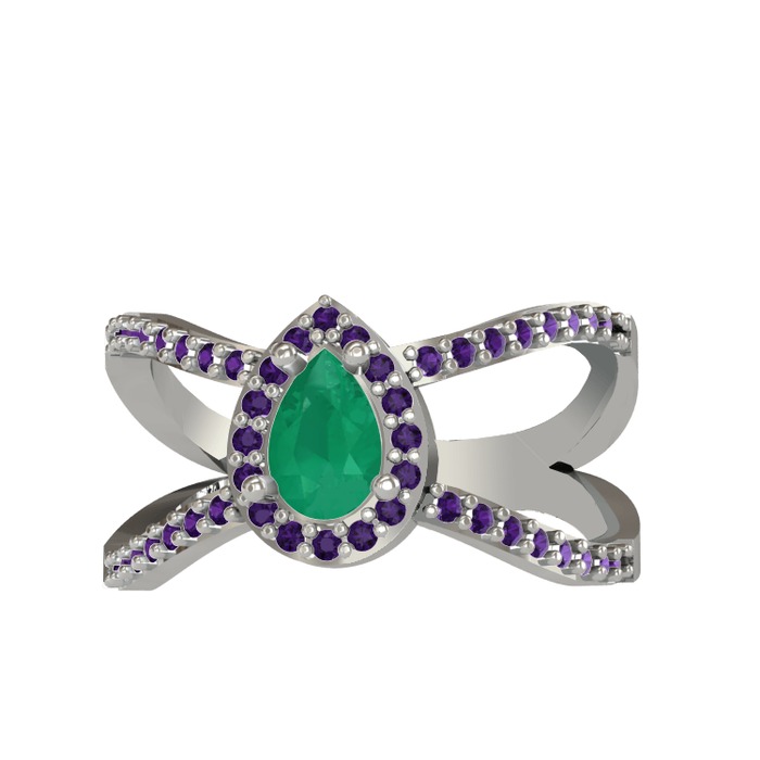 Kök zümrüt ve ametist 18 ayar beyaz altın yüzük