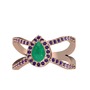 Kök zümrüt ve ametist 925 ayar rose altın kaplama gümüş yüzük