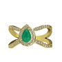 Kök zümrüt ve beyaz zirkon 14 ayar altın yüzük