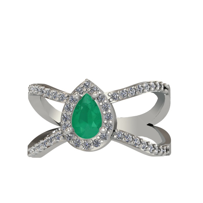 Kök zümrüt ve pırlanta 14 ayar beyaz altın yüzük (0.4224 karat)