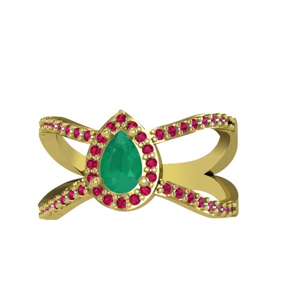 Kök zümrüt ve rodolit garnet 14 ayar altın yüzük