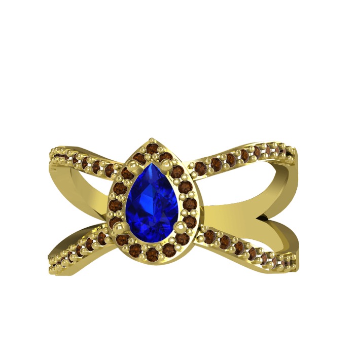 Lab safir ve dumanlı kuvars 8 ayar altın yüzük
