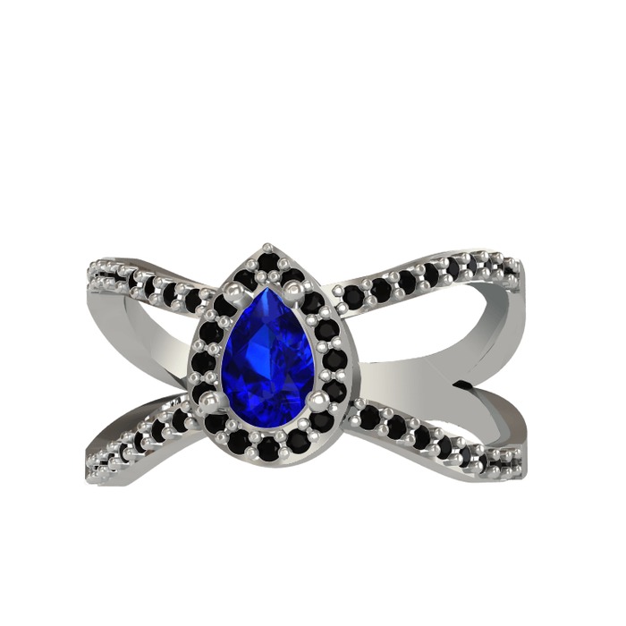 Lab safir ve siyah zirkon 18 ayar beyaz altın yüzük