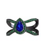 Lab safir ve yeşil kuvars 925 ayar siyah rodyum kaplama gümüş yüzük
